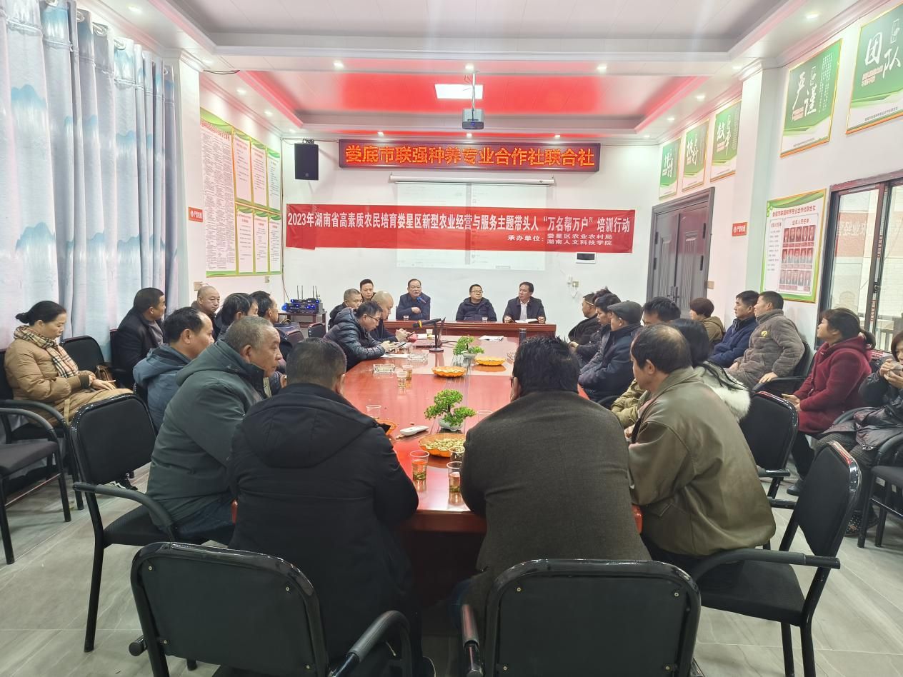 1月16日上午,农生院副院长(农科所副所长)康林峰率张伟兰、聂琼、彭日民、李红建服务团队前往位于娄星区蛇形山镇的“娄底市联强种养专业合作社联合社”开展2023年湖南省高素质农民培育娄星区新型农业经营与服务主体带头人“万名帮万户”活动。娄星区蛇形山镇副镇长宋苏文,娄星区农业农村局科教股股长胡晓波,蛇形山镇农技服务中心工作人员以及来自参加了2023年湖南省高素质农民培育“娄星区新型农业经营与服务主体带头人”培训班的学员和该镇从事种养殖的农户共40多人参加了活动。