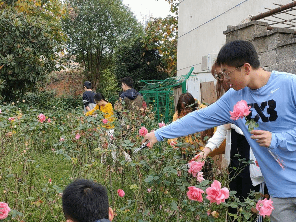 | 图四 同学们在月季园体验剪枝造型艺术 |