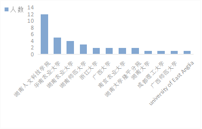 近三年来35人考上研究生。录取学校如图1所示。专任教师指导学生参加各种学科竞赛活动,并获得湖南省互联网+大学生创新创业大赛一等奖1项,全国大学生生命科学创新创业大赛一等奖2项,国家级大学生创新创业训练计划项目10