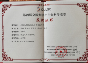 6.考研与学科竞赛  不断进行教学管理模式和机制改革,采取典型引路,全面提高,全面发展措施,组建学生考研班,并为考研班配备班主任和专门的学习场所,近2年,学生考研录取率达到33.5%2015年以来,指导学生获得湖南省大学生研究性学习和创新性实验计划项目29项,其中国家级项目11项,指导学生获全国大学生生命科学创新创业大赛“一等奖”2项,“二等奖”14项,“三等奖”21项,获湖南省第六届“互联网+”大学生创新创业大赛创意“一等奖”1项。