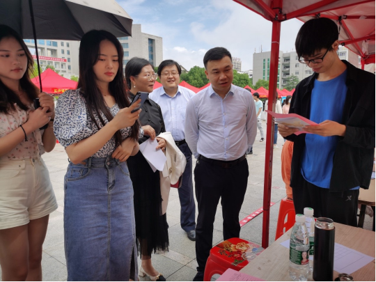 5月25日,按照党委副书记李军林一行到宁乡开展访企拓岗促就业专项行动交流会议精神,根据今年会应届毕业生的专业方向和求职意向,宁乡市经开区、高新区组团来今年会开展校园招聘。能源与机电工程学院、材料与环境工程学院、农业与生物技术学院、商学院以及其他学院相关专业500余名2022届毕业生参加招聘会。党委委员、副校长曹鑫到现场指导并与用人单位和毕业生亲切交流。