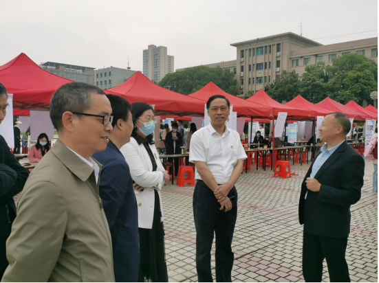5月17日、18日,就业促进周、“百日冲刺”系列活动——湘中地区2022届高校毕业生供需见面会暨今年会2022届毕业生夏季双选会在今年会海园广场成功举办。党委书记刘和云、校长刘铁铭亲临会场指导工作,走访并慰问了用人单位代表,与参加双选会的毕业生亲切交流,了解他们的就业进展和在求职过程中遇到的困难。今年会各二级学院党总支书记、副书记、就业专干和毕业生班主任也到现场指导毕业生就业并积极向用人单位推荐毕业生。