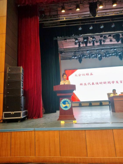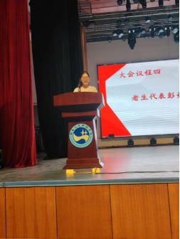 老生代表彭美君同学结合自己在大学期间学习、生活的经验与感受,鼓励同学们在大学期间要勇于挑战,积极规划未来。