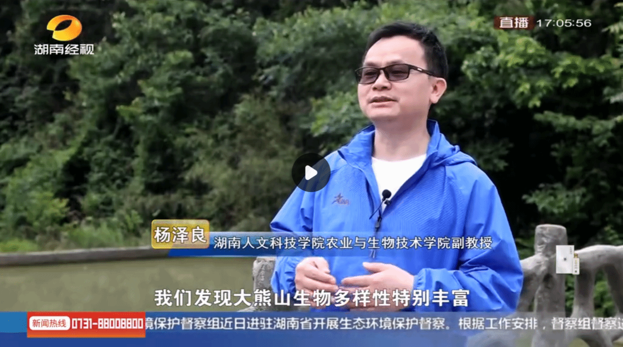在这个春末夏初、万物繁茂的美好季节,一场别开生面的植物科普直播活动于5月16-18日在风景如画的大熊山国家森林公园成功举办。本次活动由娄底电视台与大熊山国家森林公园管理处联合举办,旨在通过网络直播的形式,向公众普及植物多样性的重要性及保护知识,同时展现大熊山独特的自然生态魅力。农生院教师康公平教授、杨泽良副教授和张斌博士作为植物学科普专家应邀参加此次活动。