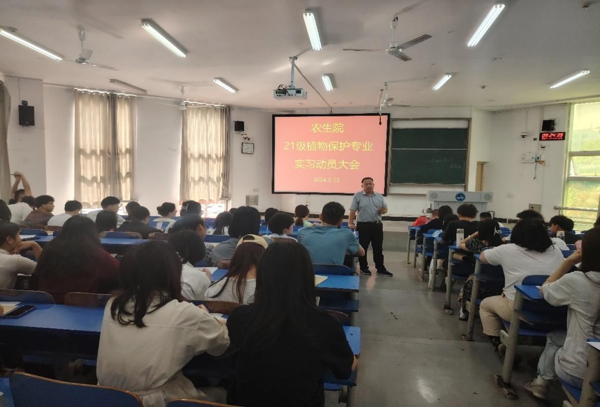 为保证植物保护专业学生实习工作顺利开展,确保学生实习期间的安全问题。5月15日上午,植物保护专业在致远楼101室召开21级实习动员大会。副院长刘泽发、学院实习负责人赵佑柏、部分实习带队老师及21级全体同学参加此次会议。会议由教研室主任张尚志博士主持。