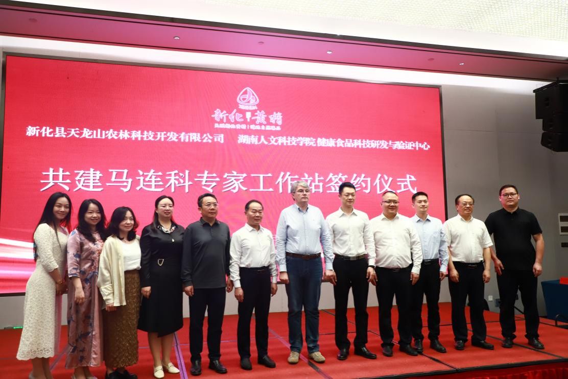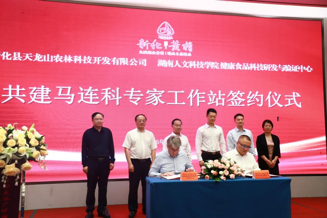 4月22日,今年会与新化县天龙山农林科技开发有限公司在新化县华美达酒店隆重举行专家工作站签约仪式。出席仪式的有校党委副书记朱强,农业与生物技术学院院长、娄底市农业科学研究所所长向国红,国际交流与合作处处长黄敏;娄底市科技局党组成员、副局长陈旭,新化县委副书记、人民政府县长彭韬等市县领导;以及娄底市委人才办、市科技局、新化县委县政府相关部门负责人和行业专家代表。