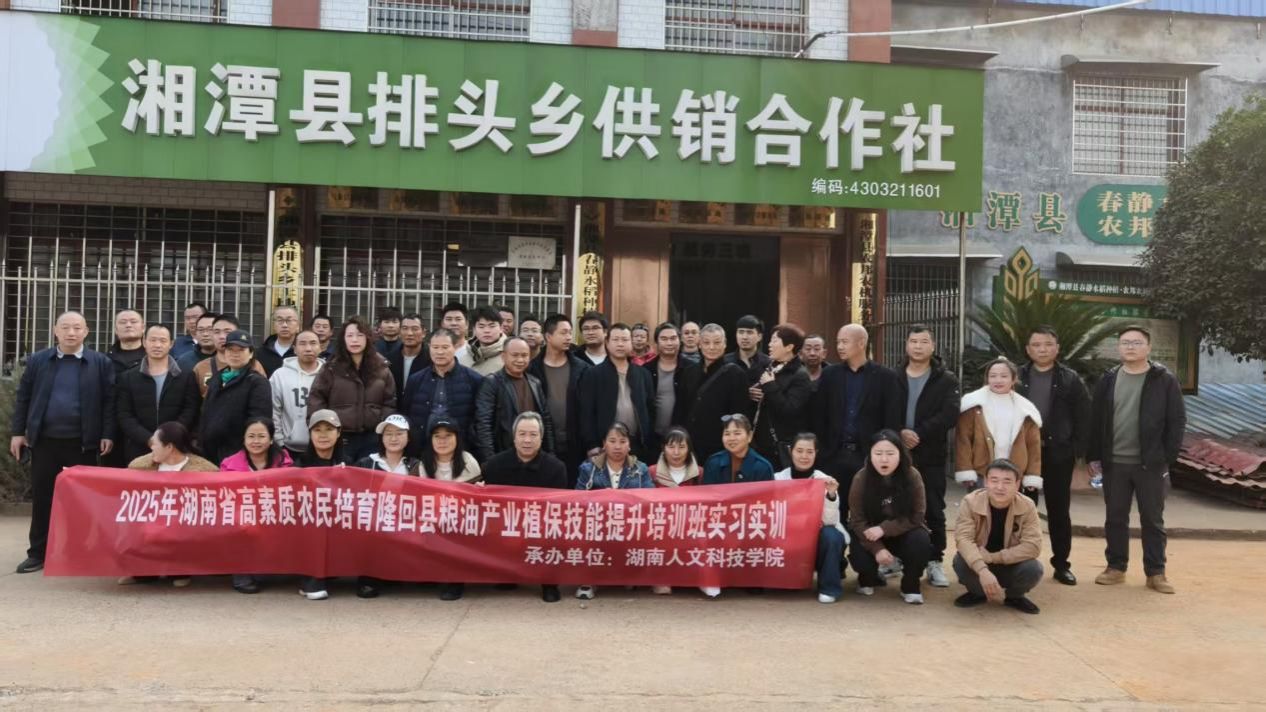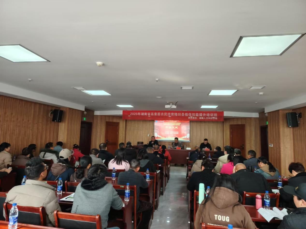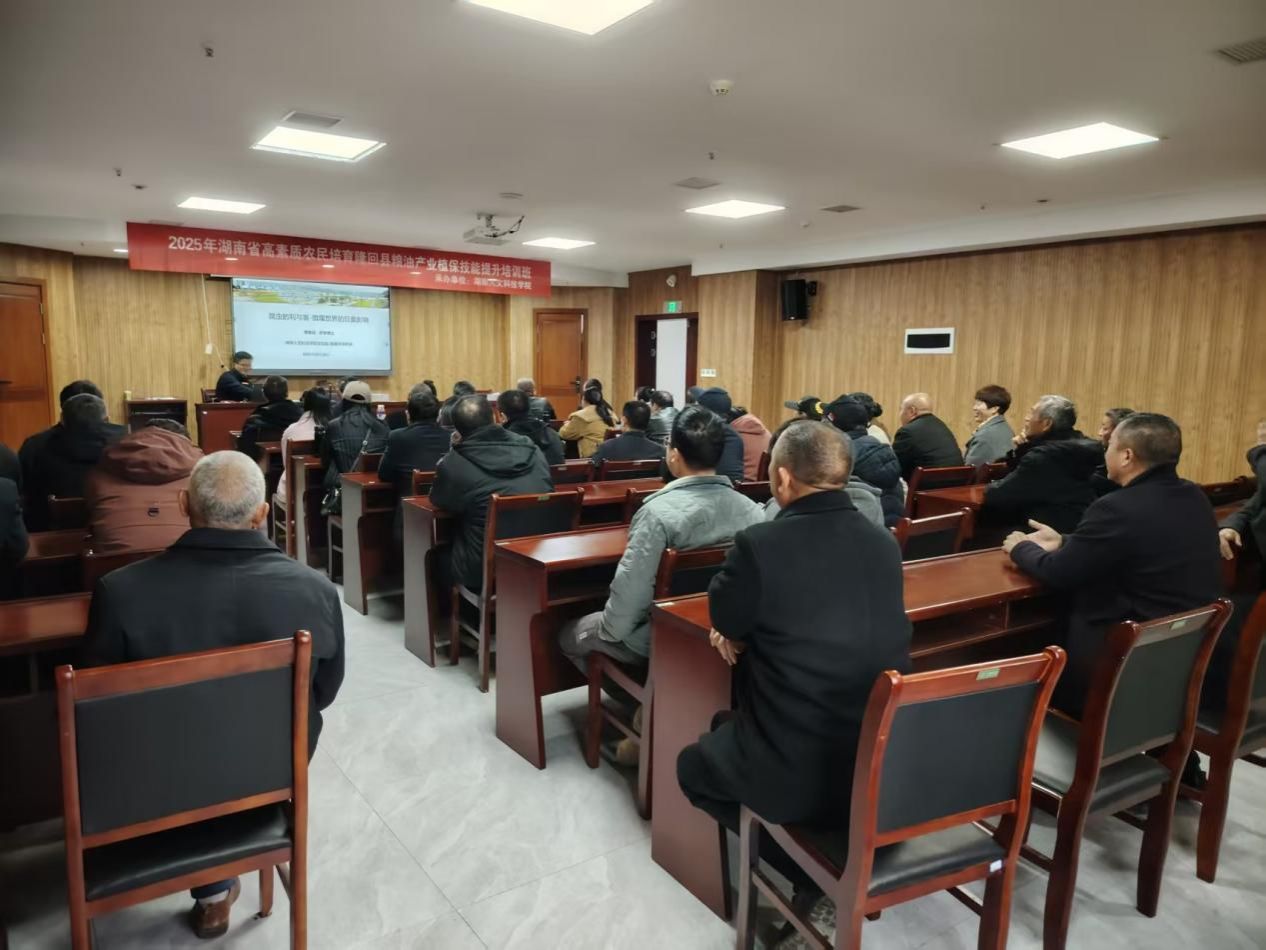 12月8日--20日,由隆回县农业农村局主办、今年会承办的2025年湖南省高素质农民培育隆回县粮油产业植保技能提升培训班成功举办。来自隆回县从事粮油生产经营服务的农民、植保从业人员、基层农技推广人员等共50人参加了为期13天的“充电赋能”之旅。今年会农业与生物技术学院、娄底市农科所、隆回县农业农村局相关领导出席。