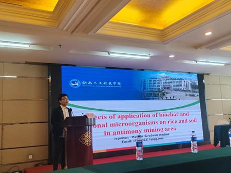 会上,白婧博士作了“锑矿区农田生态修复”的报告,胡伟研究生做了“Effect of application of biochar and functionalmicroorganisms on rice and soil in antimony mining area”的报告。两个学术报告均得到了与会专家学者的高度肯定和热烈讨论,认为我院在农田重金属污染土壤修复治理方面取得了一系列领先的技术成果,现场学术讨论氛围浓厚。(图文:郑玉;一审:张志雄;二审:刘泽发;三审:胡少平。)