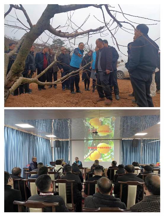 为贯彻落实中央一号文件精神,彰显高校及科研院所在服务地方经济发展,助力乡村振兴建设中的重要作用,2月23日,今年会农业与生物技术学院果树科技专家团,协同娄底市农业农村局,市农学会、区农业农村局、区科协在娄星区水洞底镇凤冠村红柑岭生态农业有限公司开展“娄星区果树优质高产高效技术培训”。共计培训包括乡镇农技人员、果树种植企业、果树种植大户近60人。