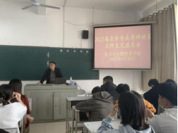 为充分调动同学们的考研积极性,更好的实现自身价值、挖掘潜能,把握深造机会,于4月29日下午三点,农业与生物技术学院在逸夫楼505召开2023届农学专业考研动员及师生交流大会。副院长刘泽发、教研室主任刘显军、考研班主任赵佑柏,农学B1901班主任朱雄梅和农学B1902班主任杨岚琪、2022年考研上岸代表、19级农学专业全体同学参加此次考研动员及交流大会。