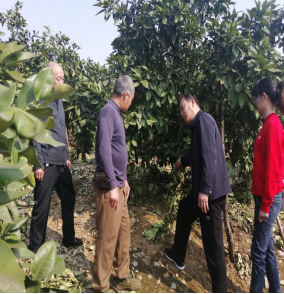 在该村农民学员谢国贤的柚子树园,50余亩柚林青翠欲滴,新吐露的新芽竞相齐发,一片欣欣向荣的景象,正是春季剪枝的大好时机。服务团队一行认真察看果树长势情况以后,康林峰对种植户提出的疑难问题进行了答疑解惑,柚子树的种植要点、难点、修剪、水肥管理、病虫害的认识防治给农民兄弟做了耐心细致地讲解,并手把手进行春季剪枝指导。