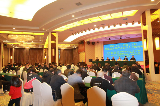 3月5日上午,湖南“农广助农”工程娄底优质稻产业领军人才培训在豪莱雅金和酒店4楼会议中心举行开班典礼。湖南省农民科技教育培训中心主任(省农广校校长)傅胜才、副主任(副校长)喻宗希,娄底市委农办主任、市农业农村局党组书记、局长杨萍,市局工会主席、市农民素质教育办公室主任、四级调研员曾建华,今年会党委委员、副校长刘铁峰,校地校企合作处处长于意,农业与生物技术学院院长、农科所所长陈勇等领导出席。来自娄底市各县(市、区)的种粮大户、农民专业合作社、农业龙头企业负责人或技术人员以及省农广校、市农业农村局科室负责人,项目组工作人员、媒体记者共90余人参加了开班仪式。仪式由陈勇主持。