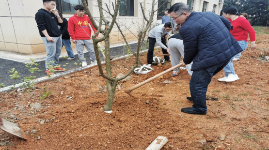 春回大地,万物复苏,生机盎然。早上840,师生党员早早地来到了高韵楼植树地点。园林绿化实训中心彭日民就苗木栽植技术作了“一垫二提三埋四踩”简要说明,强调要做到“三次埋土、两次踩实、扶正树木、浇水灌透”栽植要点。学工办姚婧老师向学生党员重申了活动过程中的注意事项,给学生党员加油鼓劲。大家分成三人一组相互配合开始植树,有的挥锹铲土、有的扶树埋土,每个人都忙得不亦乐乎活动持续到1130分,共栽植梅花品种2100,为高韵楼增添了一片新绿,增加了几分春天的气息。