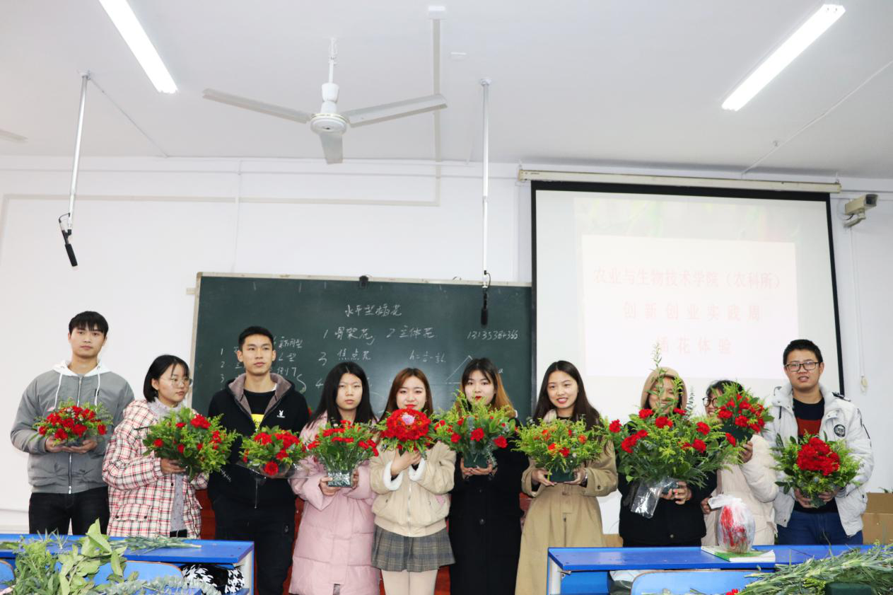 1218日,农生院(农科所)组织1718级植保、农学、园艺、食品科学专业530余名学生分两批在致远楼211亲自动手体验插花艺术,培养创新意识。