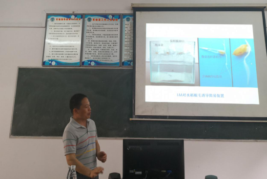 报告会上,罗文教授以绍兴淡水珍珠的研究背景与研究价值为导入,详细向同学们介绍珍珠钙代谢、酶测定以及提高淡水珍珠产量色泽的相关试验方法。莫亿伟博士与大家分享了他的最新课题研究:H2O2信号参与IAA诱导根毛的形成,发现根毛及侧根形成需要IAA极性运输等重要结果。报告内容深入浅出、层次分明、重点突出,为与会老师同学们做了一次生动、活泼的科研分享。两位教授语言幽默,讲座富有内涵,课件制作精美,让老师和同学学习了知识的同时又享受了视觉的盛宴。