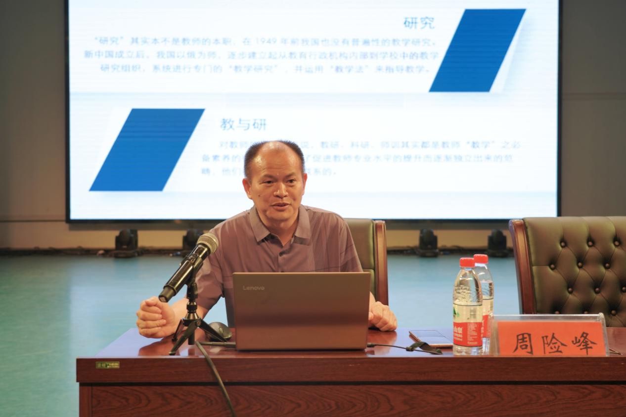 湖南科技大学周险峰教授、博导做主题为“教学研究主题选择与表达应注意的几个问题”的专题讲座,他从教师教研的价值、教研主题的确立、教研主题的表达、教研必要的准备四个方面给教师阐述了如何做好教学研究、提升教研水平。