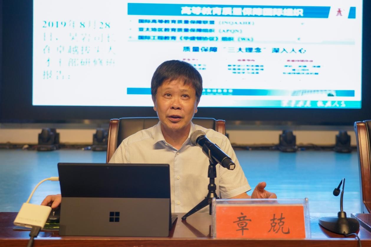 图一:湘潭大学原党委书记章兢教授、博导做主题为“普基于产出导向理念的教学设计与运行”的专题讲座