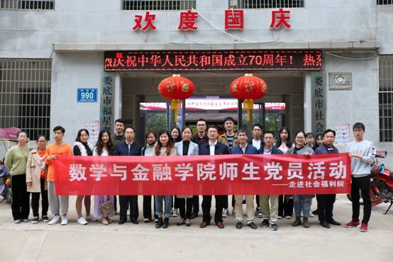 10月24日下午,数学与金融学院党总支围绕学校“不忘初心,牢记使命”主题教育总体安排,根据学院“我和祖国共成长”党员活动月主体方案开展主题党日活动,全体师生党员走进娄底市社会福利院,为福利院孩子们送去关爱与温暖.