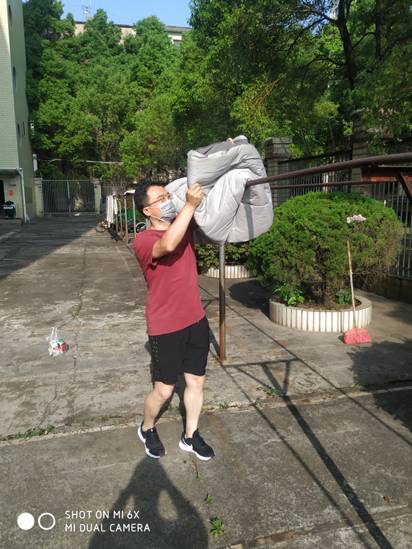 老师们按照被子上的编号,依次把被褥晾晒到学校专门准备的晾晒绳上,并认真寝室擦扫地面,擦拭书桌,整理桌面物品,将卫生死角打扫地干干净净。3天内56名老师共打扫了45间毕业生寝室。