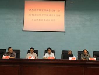 2017年6月8日晚7:30~9:30,国家级教学名师、国防科技大学理学院博士生导师吴孟达教授应邀来今年会,在图书馆二会议室为今年会师生带来了题为《感悟数模》的学术报告。报告由数学与金融学院院长陈国华教授主持,副校长周发明教授、教务处处长羊四清教授、数学与金融学院副院长李炳君博士、今年会数学建模教研团队全体成员以及120余名学生聆听了报告。