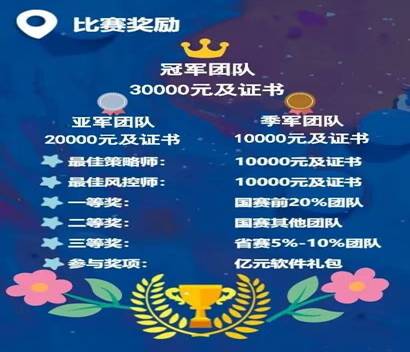 5)校赛综合收益排前30%的同学进入省赛,并参加2020年第六届东方财富杯全国大学生金融精英挑战赛培训。