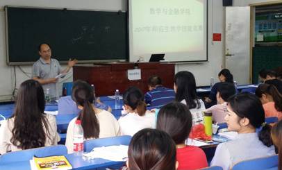 6月11日,数学与金融学院2017年师范生教学技能竞赛暨2017年湖南省普通高校第三届师范生教学技能竞赛校内院级选拔赛在致远楼5-412教室成功举行。