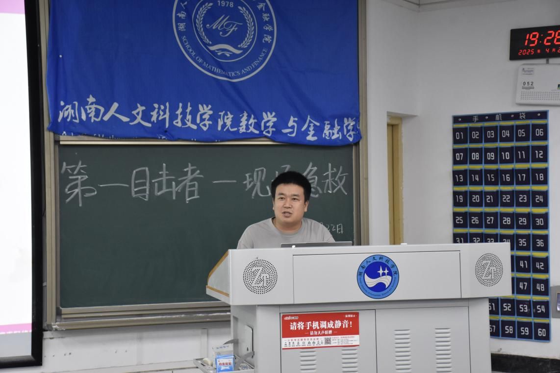 4月22日,数学与金融学院在致远楼501教室成功举办“第一目击者——现场急救”主题科普讲座。特邀娄底市妇幼保健院手术麻醉中心王诗语医生主讲,为同学们带来了一场实用且生动的急救知识分享。
