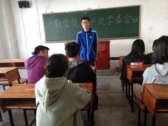 2018年11月1日中午,数学与金融学院在致远楼415教室组织召开学习委员会议。参加本次会议有院学生会副主席金灵、纪保部部长蒋博、学习部部长罗弘以及非毕业班班级学委。会议由罗弘主持。会议的主要议题是对本学期的我院查课工作进行相关安排。