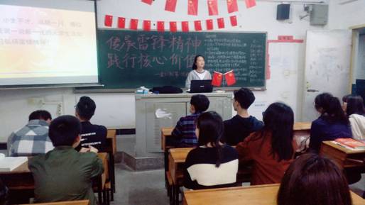 三月是桃花盛开时节,更是学习宣传雷锋精神的重要时节,为了响应团中央关于“向雷锋同志学习”的号召,纪念雷锋,数学与金融学院2017级全体同学参加了2018年3月14日晚7:30在致远楼举行以“传承雷锋精神,践行核心思想”为主题的班会。