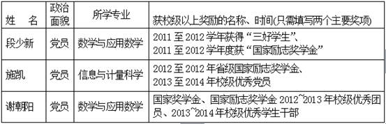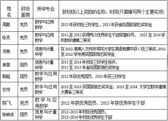 表1 2015届省级优秀毕业生名单