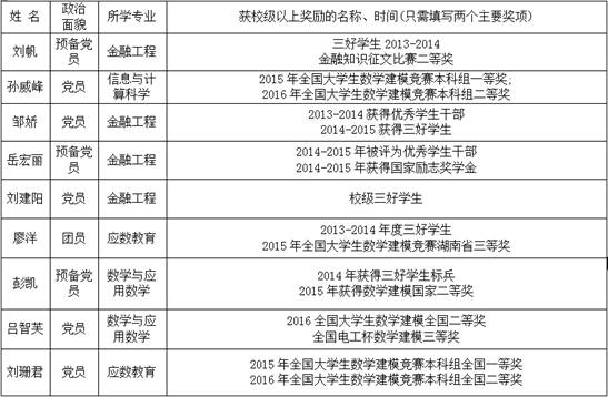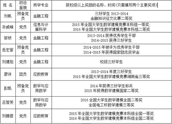 表3 2016届省级优秀毕业生名单
