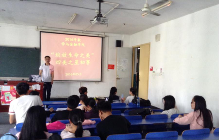 下午13:00时,数学与金融学院 “四美之星”初赛在致远楼412教室举行初赛,数学与金融学院周兰副书记、全体辅导员出席此次活动并担任评委。
