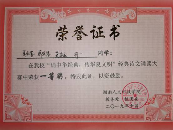 诵读大赛经过学院初赛、学校复赛、决赛,已经告一段落,荣誉是对我们的认可和鼓励,也是激励我们不断前进的动力。数学与金融学院的同学们将不忘初心,砥砺前行,为未来取得更多好成绩打下坚实基础。(供稿:孙蔚菁)