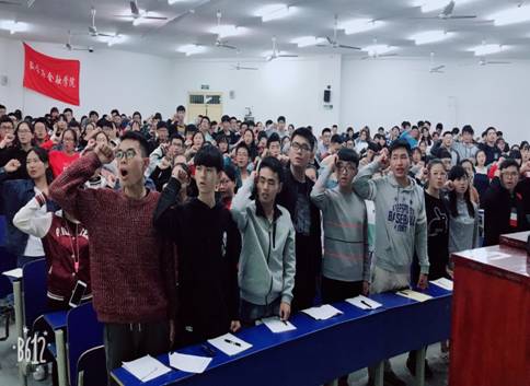 团培课程开始前,全体成员在中国共青团团歌的伴随下重温入团誓言。之后,由张蔚老师宣布开班,并寄语团员们能够认真地去学习共青团知识,提高综合素质。团培正式开始,团总支副书记王长青为学员们讲述团校培训的管理制度,并提醒大家应当关注十九大,关心国家政治。随后,团副张鼎慧为学员们介绍团务知识,其中涉及到了共青团的历史、发展历程、组成结构等内容,使学员们对共青团有了更深的了解,也明白了自己作为团员的责任和义务。