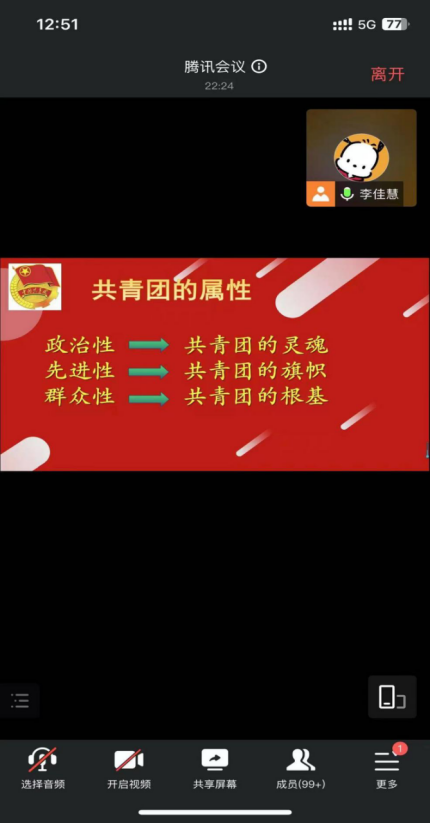 学工办主任牛津、团总支书记李佳慧,以及团总支学生副书记谢宇、袁若琛承担了此次团培授课。培训期间,参训团员专题学习研讨了“学习党的二十大精神”。并采取线下考试与线上视频拍摄相结合的方式,综合考查了团员们对团课知识的掌握情况和综合运用能力。同学们在这次团校培训中收获颇丰。