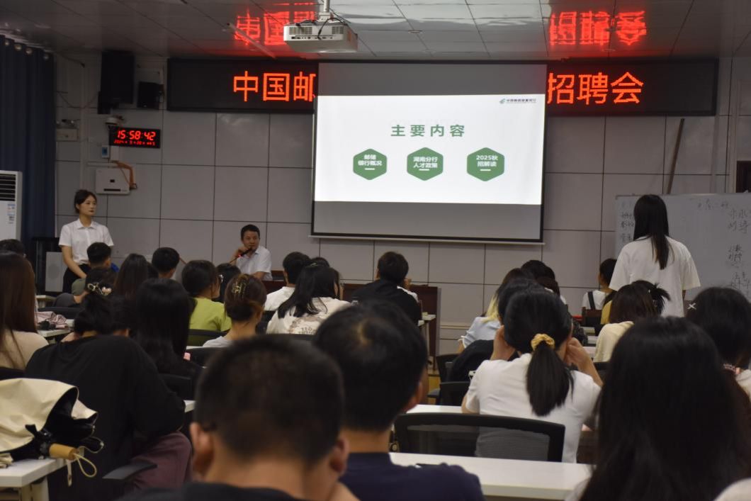 9月20日下午,中国邮政储蓄银行校园招聘宣讲会在高韵楼101会议室成功举办。我院联合商学院邀请到了中国邮政储蓄银行娄底分行综合管理部总经理汪志宜、娄底市新星支行理财经理廖颖进行招聘宣讲,全校共计120余名毕业生参会。