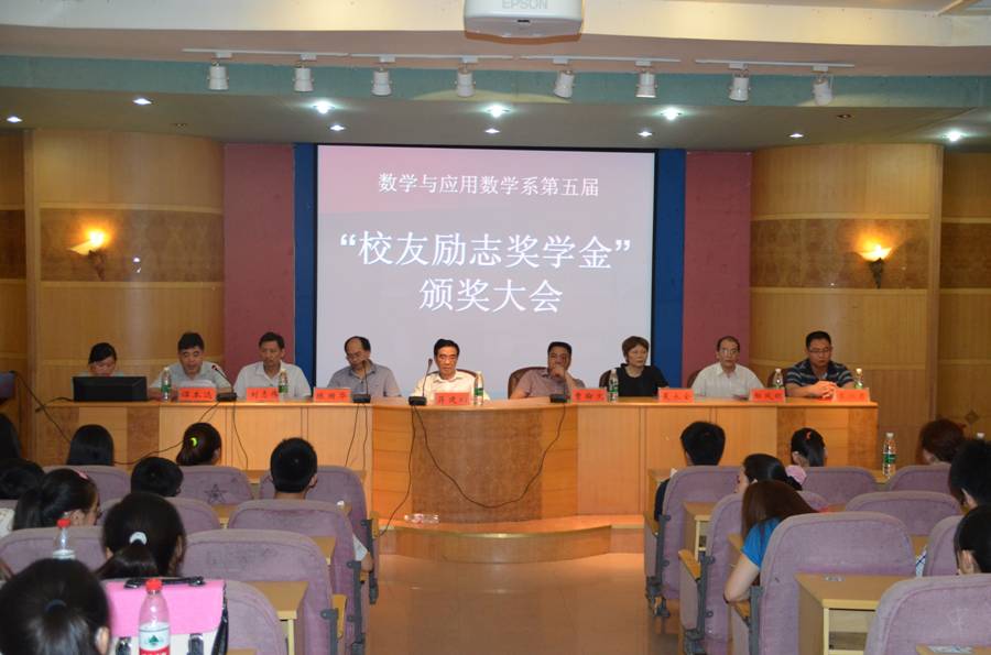 颁奖大会在谭书记的主持下召开,在谭书记宣读完《今年会数学与应用数学系校友励志奖学金章程》后,首先对获奖的学生进行了表彰和奖励,并分别请毕业班学生代表刘亮和肄业班学生代表何娣发言。接着曹翰文先生对学生提出了希望,期盼大家能实现自己的价值,尽快找到自己专业与社会的对接点,关心国家的政策,并勉励大家一起为数学系的发展努力!陈主任对我们也提出了希望,望我们能怀以青云之志,怀以社会之责,秉持一颗感恩的心!成就自己,成就一个精彩的数学系!最后蒋建初副校长从数学的角度和数学工作者的角度给我们做了总结,把做学问的三境界与做人的三境界相结合给我们作了深刻的诠释,蒋校长说:一个人无论做什么,只有立志了才能不彷徨、不迷惑,我们要时刻准备着,只有这样才能把握住机会。他还激励我们要多做有益于社会的事,做一个服务于社会的人!