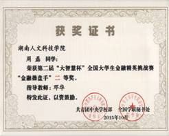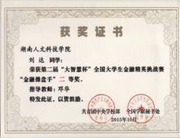 第二届“大智慧杯”全国大学生金融精英挑战赛由团中央学校部、全国学联秘书处主办,上海大智慧股份有限公司承办,吸引了清华大学、北京大学在内的1608所高校21.3万名学生报名参赛,竞赛于2015年3月启动,初赛和复赛历时近5个月。参赛学生使用大赛专用平台,以A股、港股、股指期货三个投资品类进行投资策略比拼,赛制对学生实践操作能力要求较高。