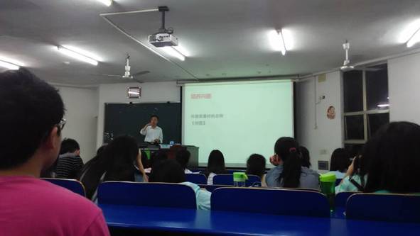 杨炼老师是从事C语言和计算机方面教学有十多年教学经验的专业教师。在讲座上,杨练老师首先为大家说明什么是C语言,为什么要学习C语言,然后为大家讲解一些经典的简单C语言题目,最后和大家一起总结如何学好C语言的方法。随后12级信计班的肖健同学上台与大家一起分享他学C语言的经历,并告诉大家要学会自学并与大家交流了C语言期末考试的策略以及如何通过国家计算机等级考试等。最后,肖健同学还为大家展示了他从学C语言开始到现在所做的一些项目。