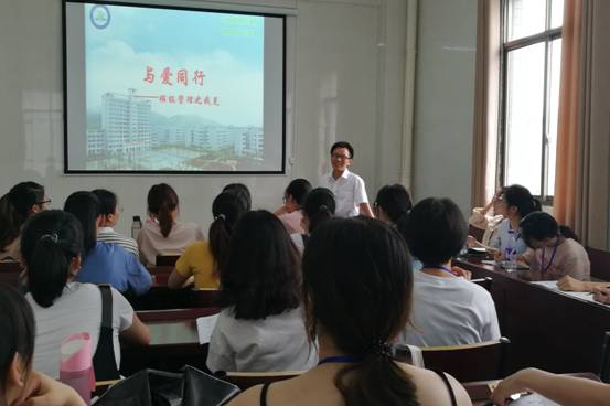 6月23日下午,娄底一中高一年级优秀班主任---邹勉,为我院进行教育见习的2016级数学与应用数学专业学生举行了题为“与爱同行---班级管理之我见”专题讲座,讲座由我院副院长罗志军主持。讲座开始前,罗志军副院长代表学院对娄底一中领导、老师为我院学生提供优良的教育见习实践场所,精心细致的安排表示感谢。