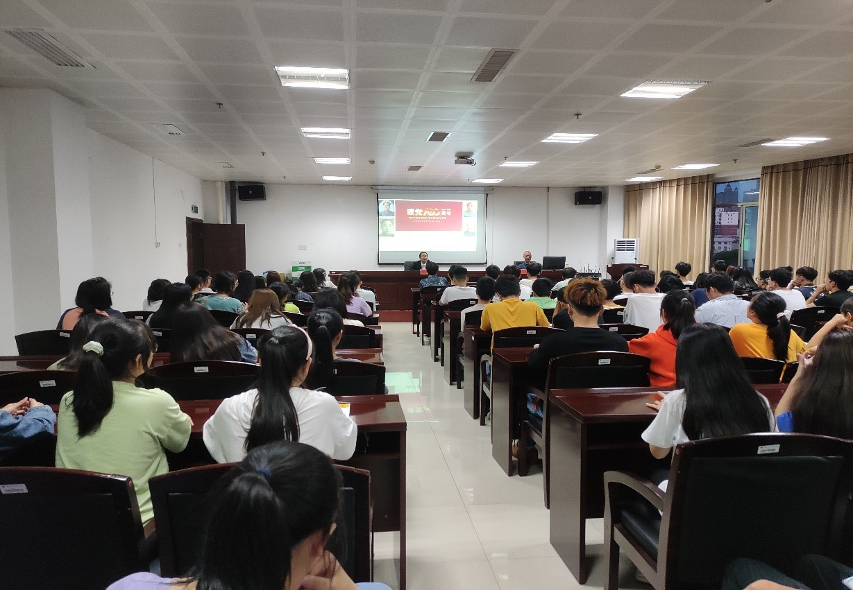 为庆祝中国共产党建党一百周年,进一步宣传阐释好党的创新理论和中国特色社会主义理论,引导广大青年学生学党史、悟思想、强信念、跟党走,深入推动党史学习教育走深走实。湖南省中国特色社会主义理论体系研究中心今年会基地、湖南省党的创新理论研究基地今年会基地在近期联合举办“学百年党史,庆百年华诞”系列讲座。6月3日晚,系列讲座第一讲在图书馆415学术交流中心开讲,第一讲由我院范大平教授主讲《中国共产党百年党史的启示》,党的创新理论研究基地常务负责人游训龙教授主持,中特理论基地秘书周浩博士、基地主要研究成员及我院100多名学生参与讲座。