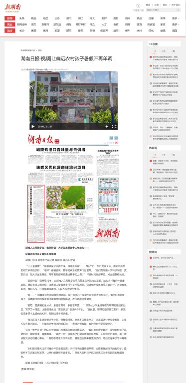 8月3日,湖南日报•新湖南客户端以《今年会“麦芒计划”大学生志愿者十二年接力——让偏远农村孩子暑假不再单调》为题报道了我院“麦芒计划”的开展情况。