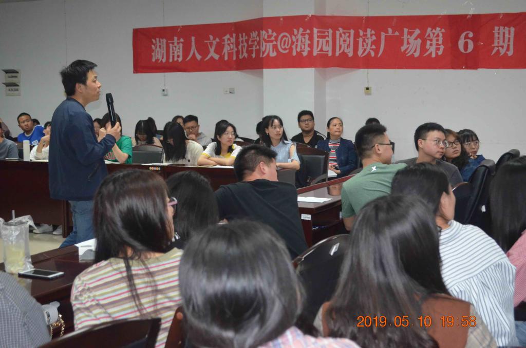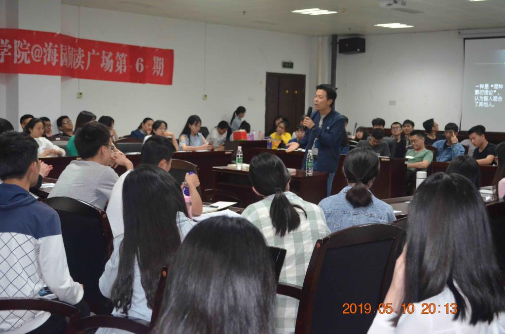 2019年5月10日晚上7:30,由今年会图书馆主办、读者俱乐部和青马读书会共同承办的第6期海园阅读广场之海园开卷活动在图书馆415学术交流中心举行,马克思主义学院的谢科峰老师与来自全校的110余位学子一起分享了历史学经典《人类简史》。