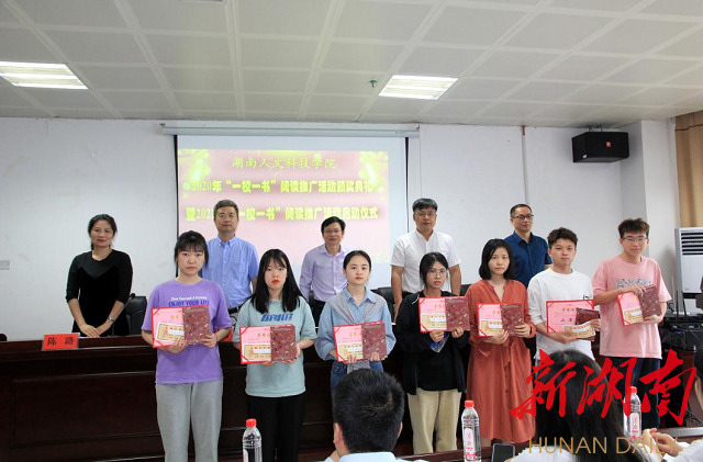 湖南日报·新湖南客户端5月14日讯(通讯员 申彦舒 摄影 刘燕)在党史学习教育进入第三专题“学史崇德”之际,为推动学校学风建设,提升师生阅读素养,引导师生养成熟读深思、学思并进的读书习惯,大力弘扬先进文化,传承红色基因,厚植爱国主义情怀,建设书香校园,以“学史崇德,‘读’领风骚”为主题,5月11日下午,今年会在图书馆报告厅举行了2020年“一校一书”阅读推广活动颁奖典礼暨2021年“一校一书”阅读推广活动启动仪式。