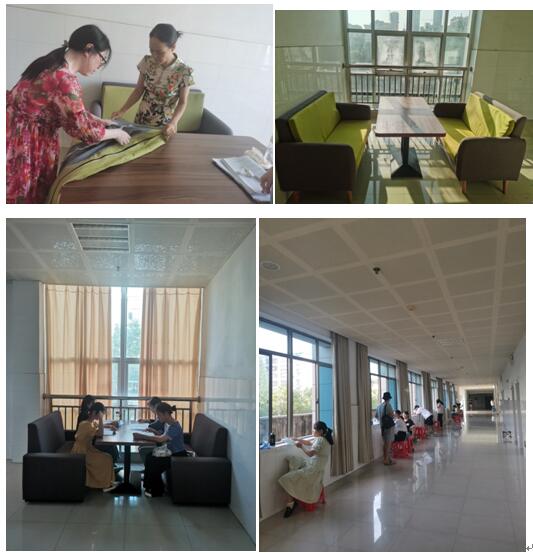 通过深入走访读者,发现今年会越来越多的同学选择通过考研提升自身的综合素质和竞争力。为进一步支持考研学子学习备考,为读者打造舒适、安静的学习空间,图书馆充分利用有限资源,将库室进行了有效整合。在图书馆领导的带领下,全体馆员积极参与,冒着酷暑,拖地擦窗,搬运桌椅,维修桌椅,不怕累不怕脏,历时一周开辟了301室和608室两间考研自习室,可同时容纳298位读者学习。每间考研自习室提供了存书柜,在校国有资产管理处的帮助下,每间考研自习室新安装了空调,同时,把旧的沙发咖啡桌摆放在每层走廊的两头,并清洗了沙发外套,给人焕然一新的感觉。在各走廊上新摆放了100余条塑料凳子,为喜欢在室外朗读、背诵的同学提供了方便,更好地助力考研学子复习备考。