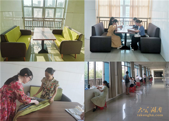 通过深入走访读者,发现学校越来越多的同学选择通过考研提升自身的综合素质和竞争力。为进一步支持考研学子学习备考,为读者打造舒适、安静的学习空间,今年会图书馆充分利用有限资源,将库室进行了有效整合。在图书馆领导的带领下,全体馆员积极参与,冒着酷暑,拖地擦窗,搬运桌椅,维修桌椅,不怕累不怕脏,历时一周开辟了301室和608室两间考研自习室,可同时容纳298位读者学习。每间考研自习室提供了存书柜,在学校国有资产管理处的帮助下,每间考研自习室新安装了空调,同时,把旧的沙发咖啡桌摆放在每层走廊的两头,并清洗了沙发外套,给人焕然一新的感觉。在各走廊上新摆放了100余条塑料凳子,为喜欢在室外朗读、背诵的同学提供了方便,更好地助力考研学子复习备考。