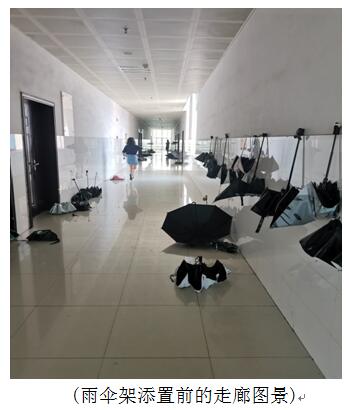 因无专门的雨伞存放设施,到馆读者的雨伞只能就地放置,这些撑开的雨伞一方面容易堵塞走廊、过道,对馆内环境产生一定影响;另一方面,雨伞上的滴水容易弄湿地板,造成地面湿滑,引发安全隐患。为方便和规范读者雨伞摆放,图书馆积极争取,在学校领导的高度重视下,成功获得专项资金立项。图书馆精心组织论证,添置了11个移动不锈钢雨伞架,可同时容纳雨伞1500把左右。雨伞架可存放直柄伞和折叠伞两种不同类型的雨伞,底部导水凹槽可将雨水导流,防止地面积水湿滑,增强了安全性和美观感,每个置伞筒编号清晰,排列有序,便于读者拿取。