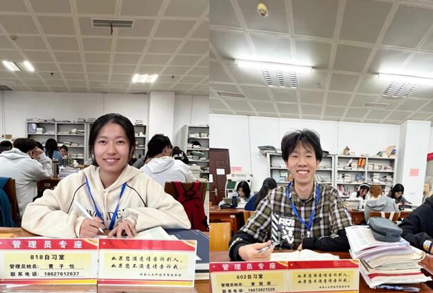 去年以来,为更好地服务读者,图书馆进行了一系列有益探索。成立自习室专项管理小组,馆领导、部门负责人、党员一对一联系自习室,收到了明显的效果。但下班后自习室的管理仍然存在无人管的状态,本学期,图书馆领导广泛深入读者开展调研,一以贯之地办实事,找准读者“需求点”,在最大限度拓展自习空间和改善自习条件的基础上,积极调整自习室管理方式,即由老师兼职管理改为学生管理。管理人员的主要职责是负责自习室的清扫、灯光和空调的管理、自习室书架的管理、占座书籍的清理、雨伞架的整理、学习秩序的维护、安全隐患排查等。图书馆面向全校学生公开招聘了12名品学兼优、能经常在图书馆学习的勤工助学学生,在每间自习室安排管理员专座,给管理员配置工作证,公布了管理员的姓名及联系方式,制定了《图书馆勤工助学管理规定及考核办法》,给每个管理员发放了100个值班口罩。