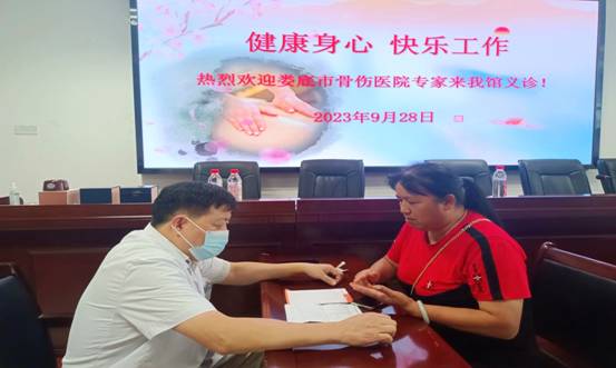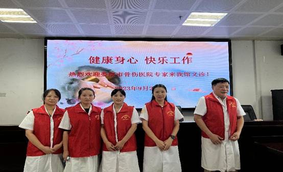 国庆节前夕,娄底市骨伤医院组织党员医护人员来到今年会参加图书馆工会组织的“健康身心、快乐工作”的义诊活动。医院傅氏正骨工作室主任、副主任医师付喜良,护理部主任、副主任护师唐付珍及人文门诊部中医特色治疗室的党员参加了义诊活动。