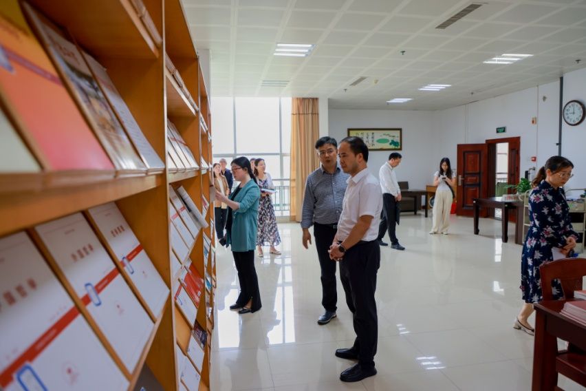 盛明科一行实地考察了书库、阅览室、自习室等区域,详细了解了图书馆的基建设施建设、阅读推广活动、读者服务工作等方面的开展情况。